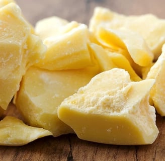 cocoa butter, white cocoa butter, cocoa mass, cocoa powder, shea butter.